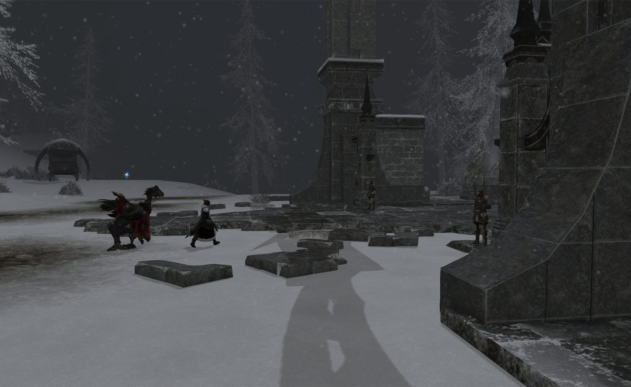 The winds howl across the Steps, whistling across the stone and whirling up the snow that had fallen. The cold bit right through his warm clothing β he would need to use the gil from the leve earlier to buy warmer clothes, that much was certain.But for nowβ¦he had something to take care of.